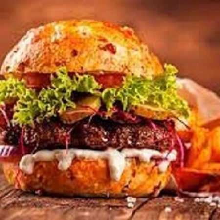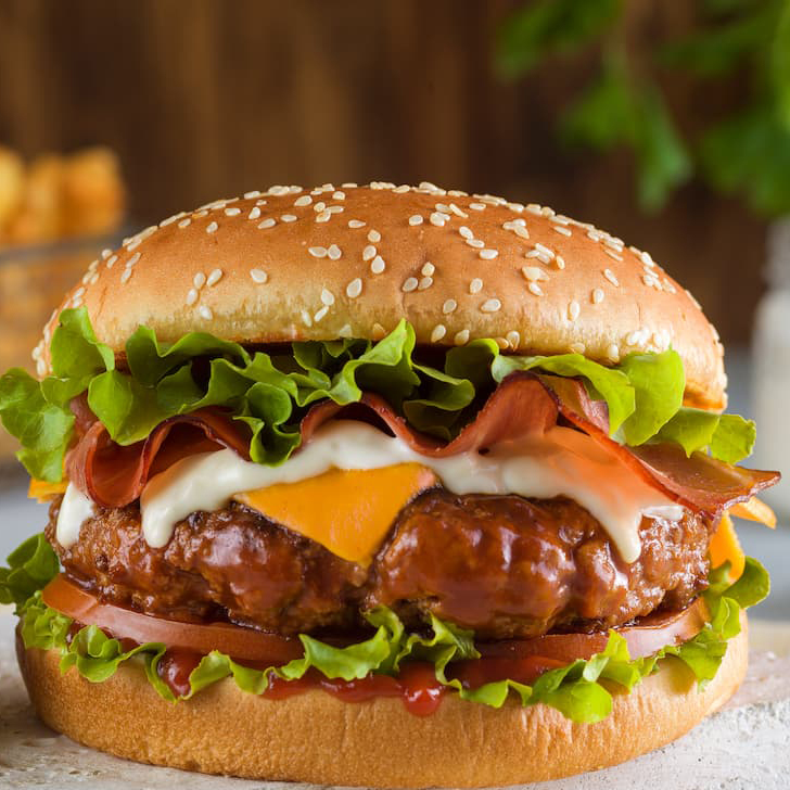 125gr Carne arrachera, tocino, jamon, queso, verduras y aderezos