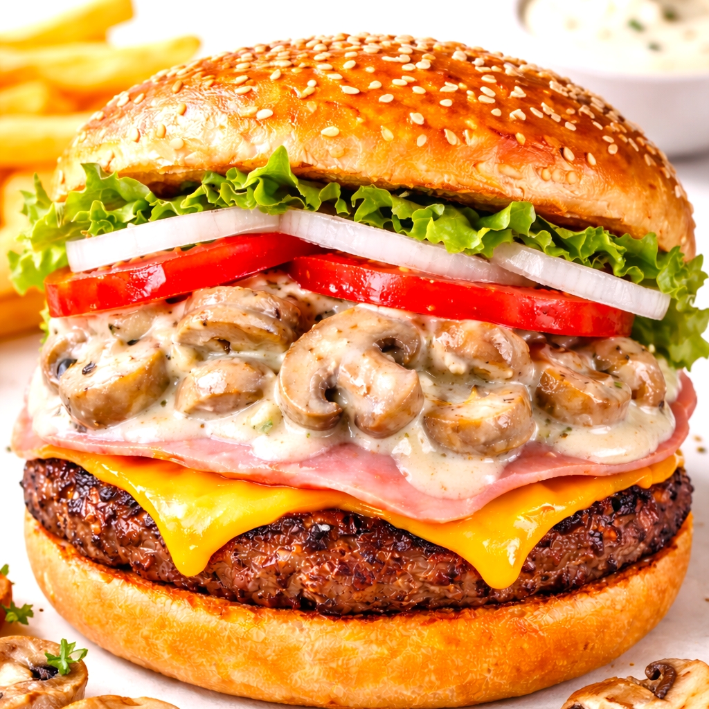 Carne, Queso Amarillo, Tocino, Salami, Champiñones con crema, Lechuga, Cebolla, Tomate, Catsup y Chile