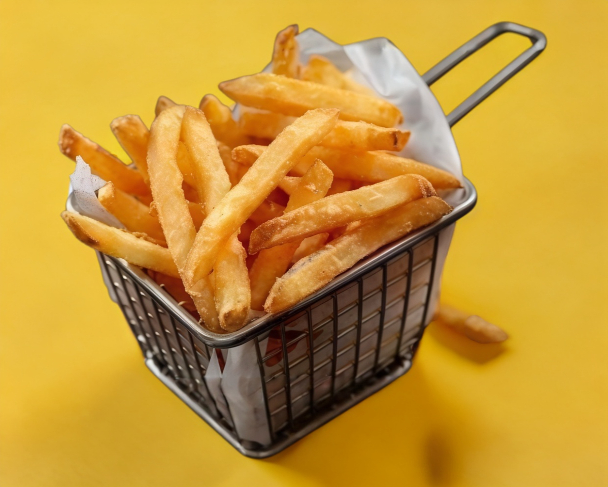 Trocitos de salchicha pavo o para asar con papas a la francesa.