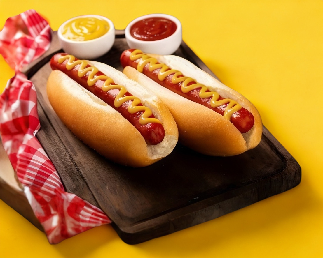 Pan hot dog de panificadora, aderezos mayonesa y mostaza, mas 150gr de boneles