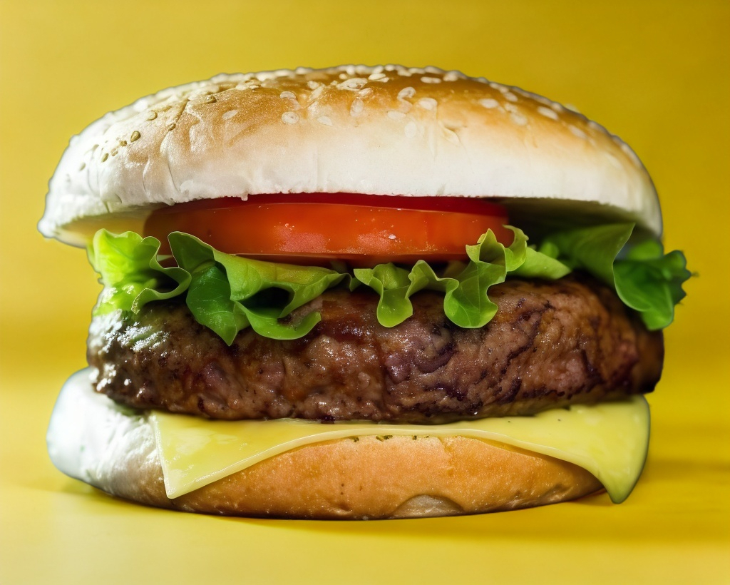 Pan de artesanal, Carne de res, Queso amarillo, Chile, Tomate. Cebolla y Aderezos.