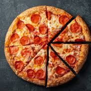 pizza mediana trae 8 porciones , cubierto con salsa de tomate y queso mozarella