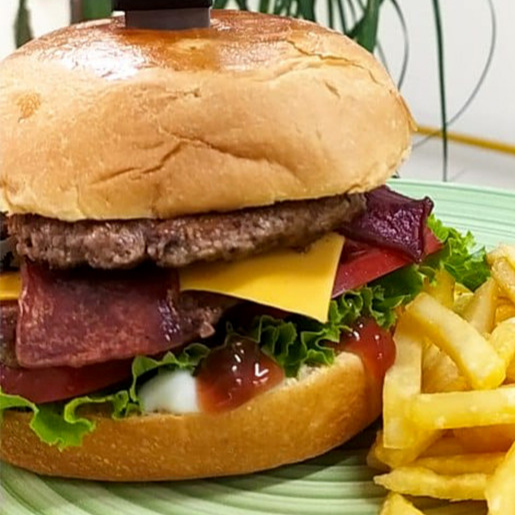 Pan tradicional con 125 g de carne, piña, jamón, queso, lechuga, cebolla, tomate y aderezos.