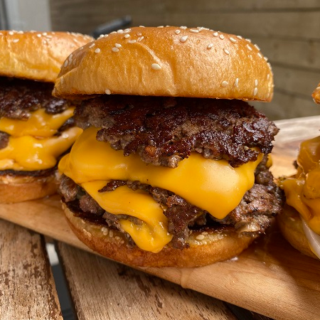 Pan tradicional con 2 pzas de 125 g de carne, jamón, queso, lechuga, cebolla, tomate, y aderezos.