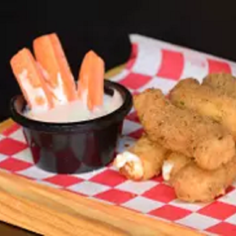 Orden de 6 piezas de crujientes y deliciosos dedos de queso, acompañados de aderezo ranch o blue cheese.