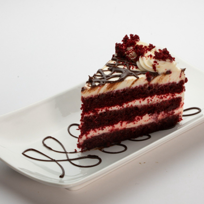 Pastel de textura aterciopelada con un sutil sabor a cacao, acompañado de un glaseado cremoso de queso.