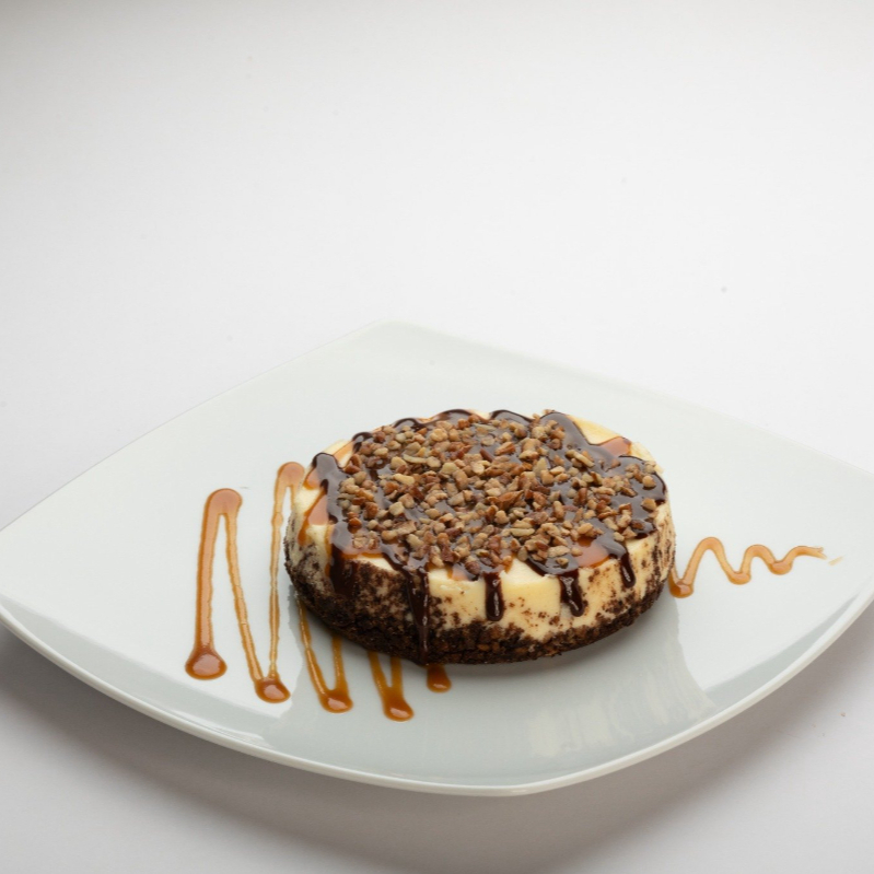 Un cheesecake especial con chocolate, caramelo y nueces, inspirado en el clásico postre “turtle”.