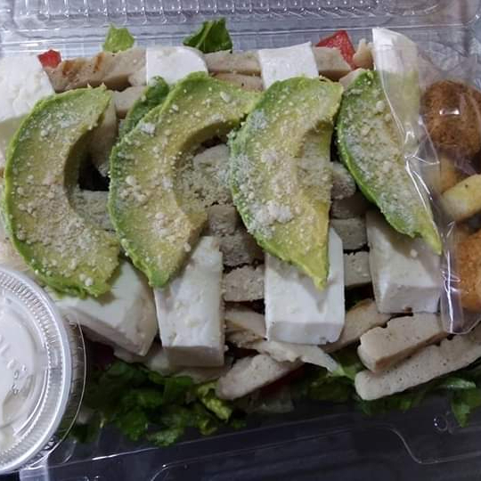 Mezcla de Lechugas, Pechuga de Pollo, Queso Panela, Crutones, Aguacate y Aderezo Cesar