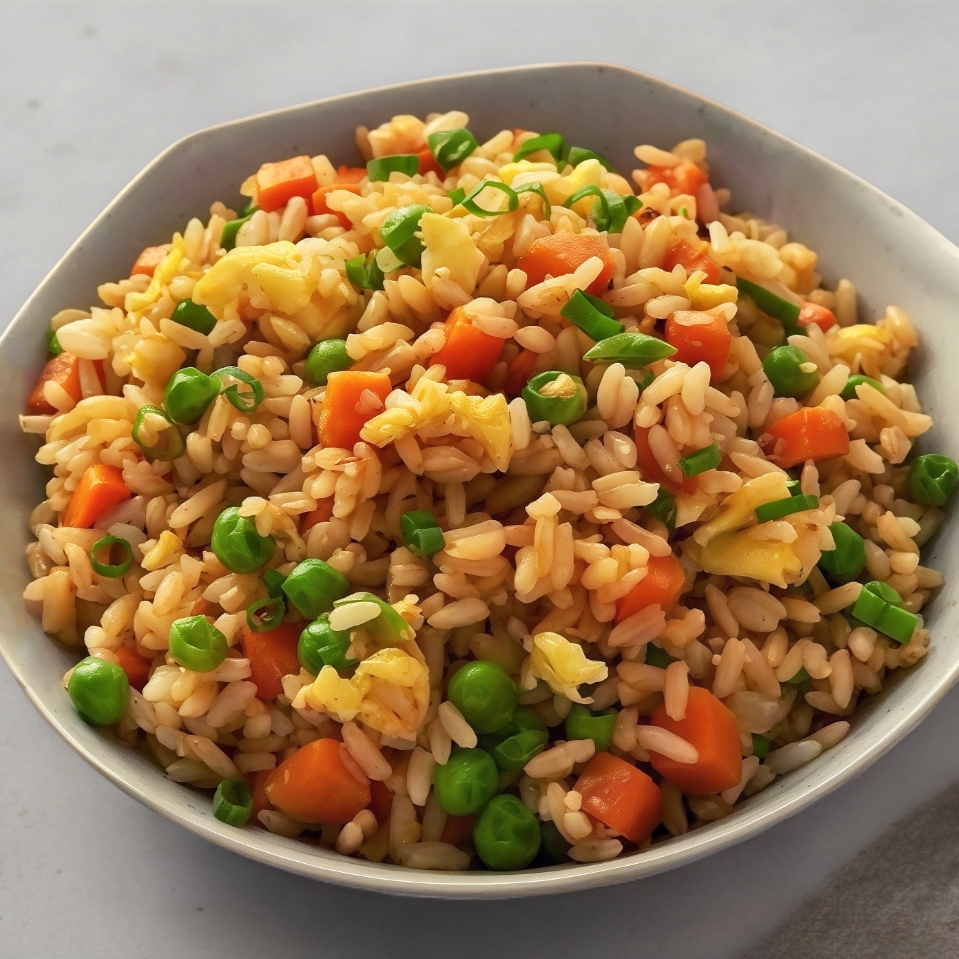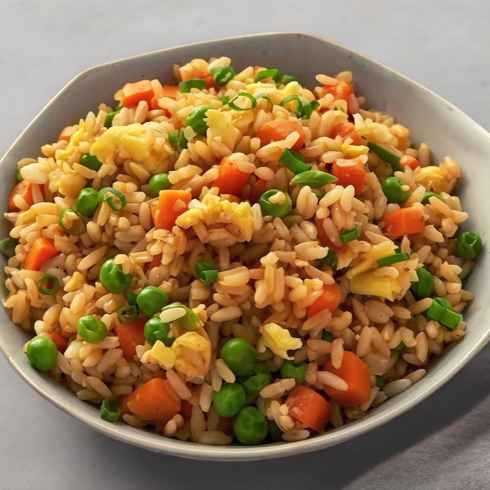 300 gr de arroz frito con 100 gr de verduras y un toque de mantequilla.