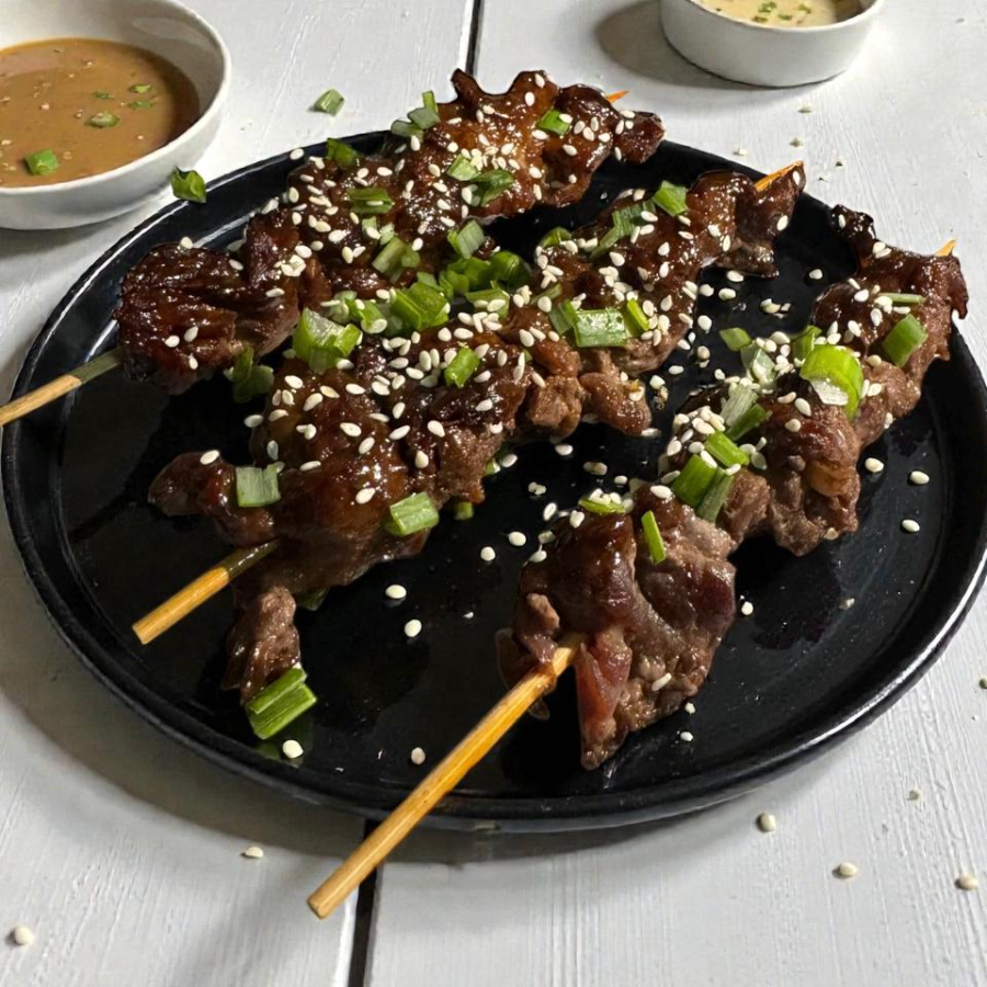 3 Brochetas De Sirloin marinada en salsa TARE + 1 Salsa de tu elección y papas a la francesa.