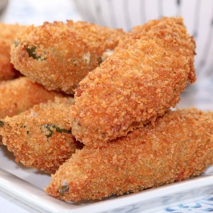 Cuatro jalapeños gigantes rellenos de queso philadelphia empanizados y acompañados de aderezo. (Para máx. 2 personas)