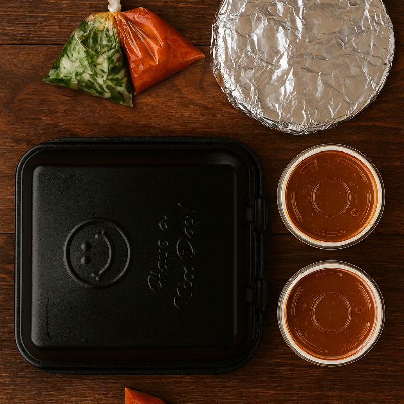 Lonche de barbacoa, salsa, verdura y limones