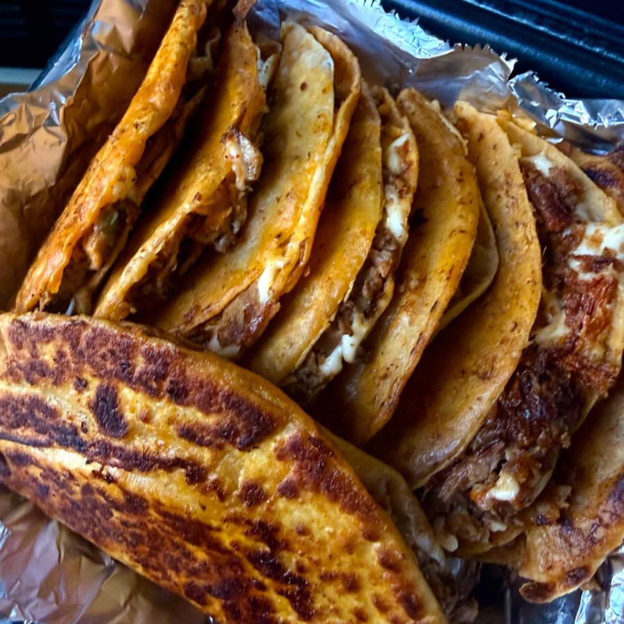Deliciosa quesibirria de harina con queso gratinado y barbacoa