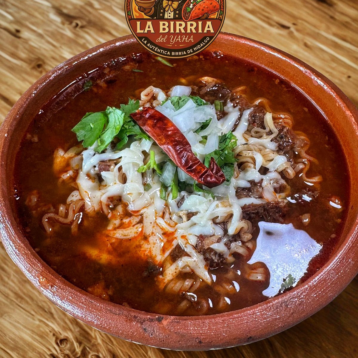Prepárate para una explosión de sabor, un caldo de ramen con la auténtica birria del yaha, calientito, reconfortante y delicioso.