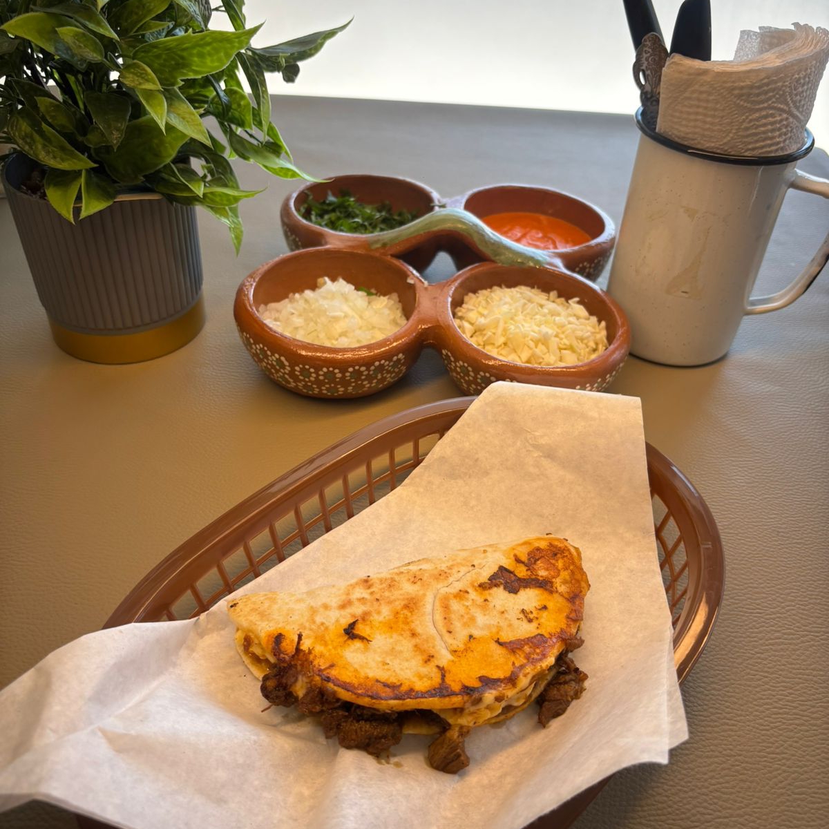 Queso fundido y birria de la mejor calidad, todo en una tortilla de harina, una combinación que te dejará con ganas de más.