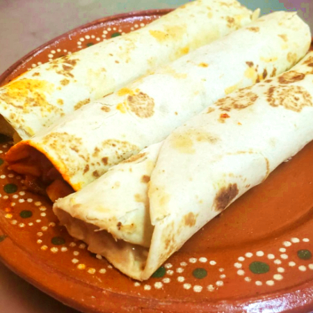 Tradicional tortilla de harina rellena del guiso de tu preferencia.