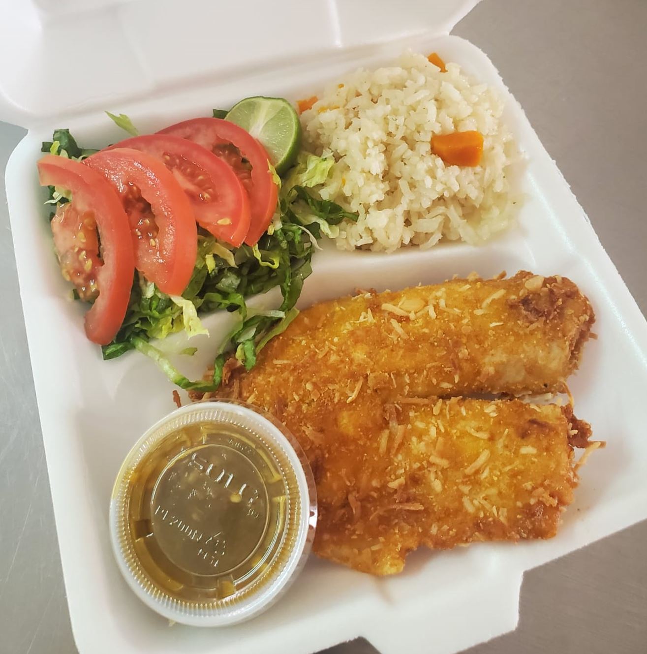 Delicioso Filete empanizado, acompañada con arroz blanco y ensalada verde.
