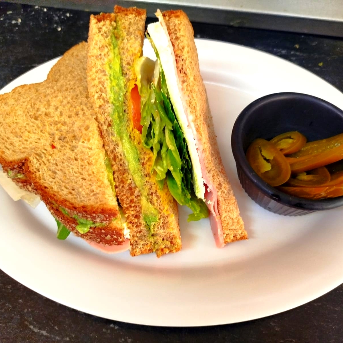 La opción más completa con lechuga, tomate, queso panela, jamón de pavo, aderezos, aguacate y pollo.