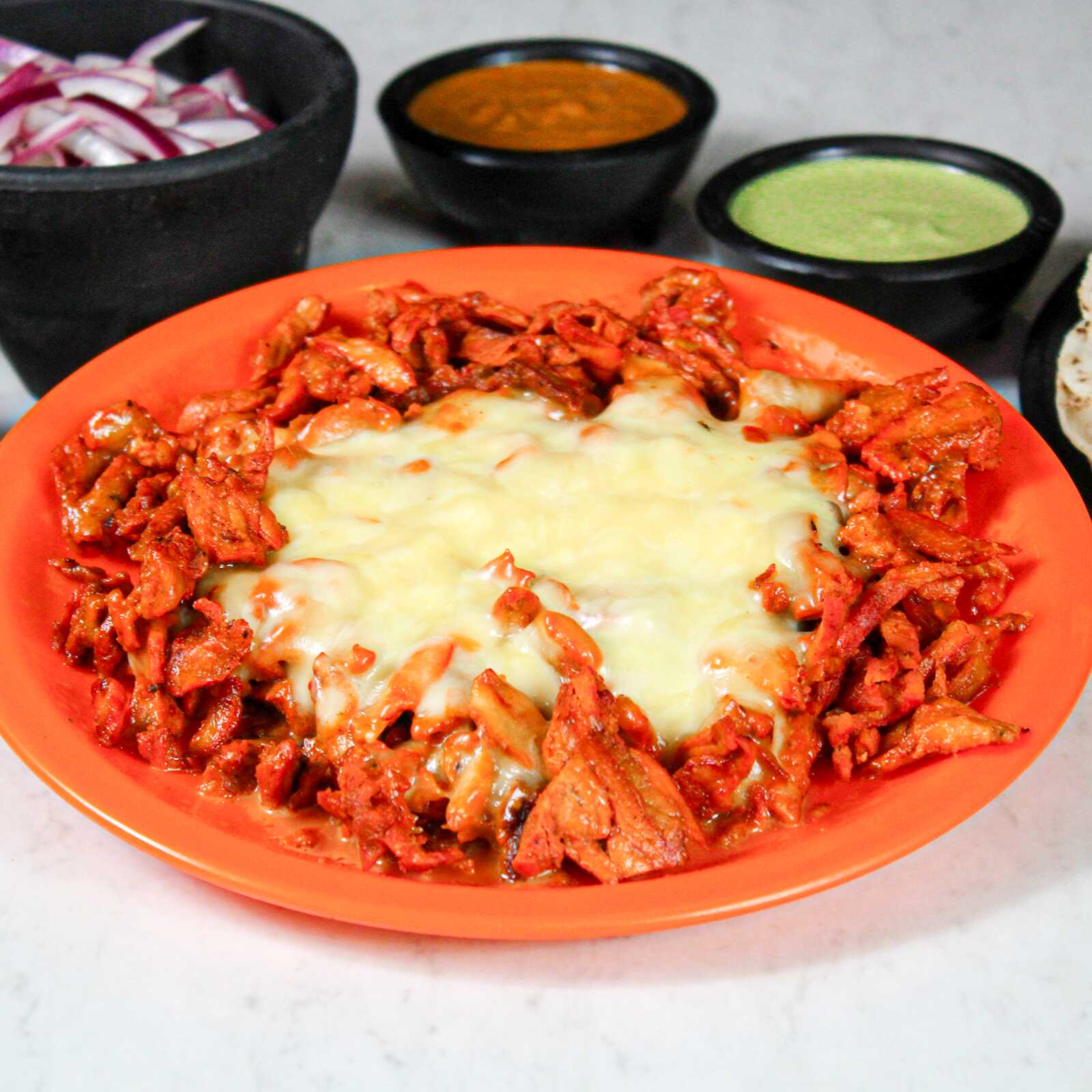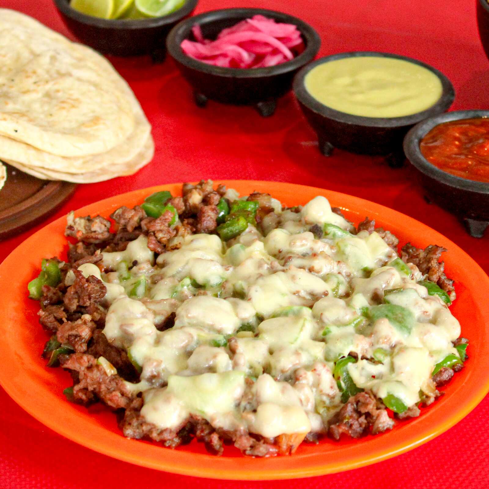 350 gr de bistec con queso. Se acompaña con tortillas.