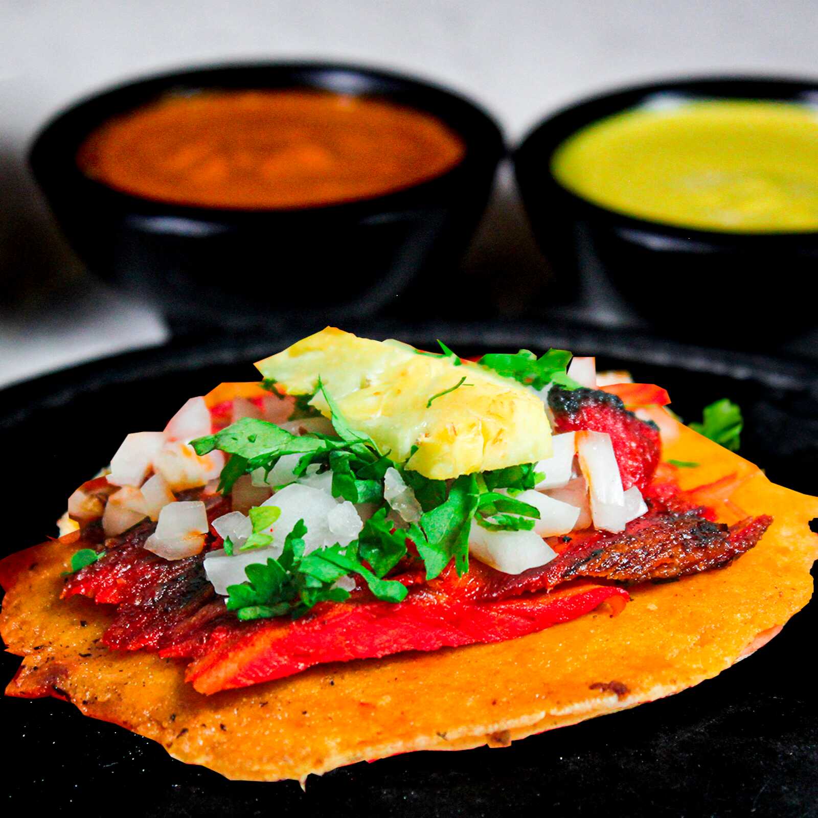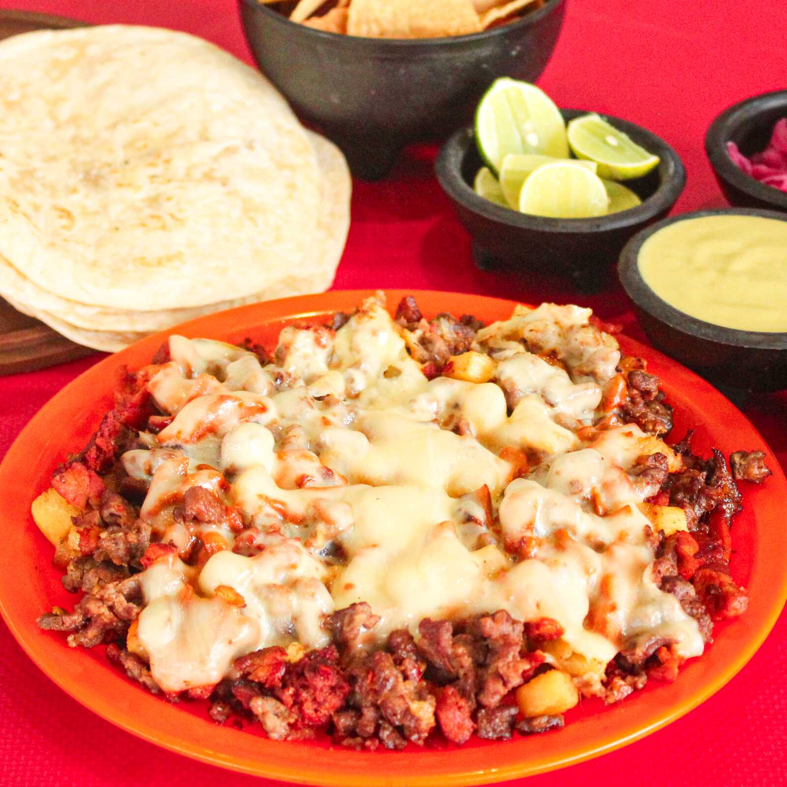 Alambre de 350 gr, contiene pastor, bistec, chorizo, queso, piña y tortillas.