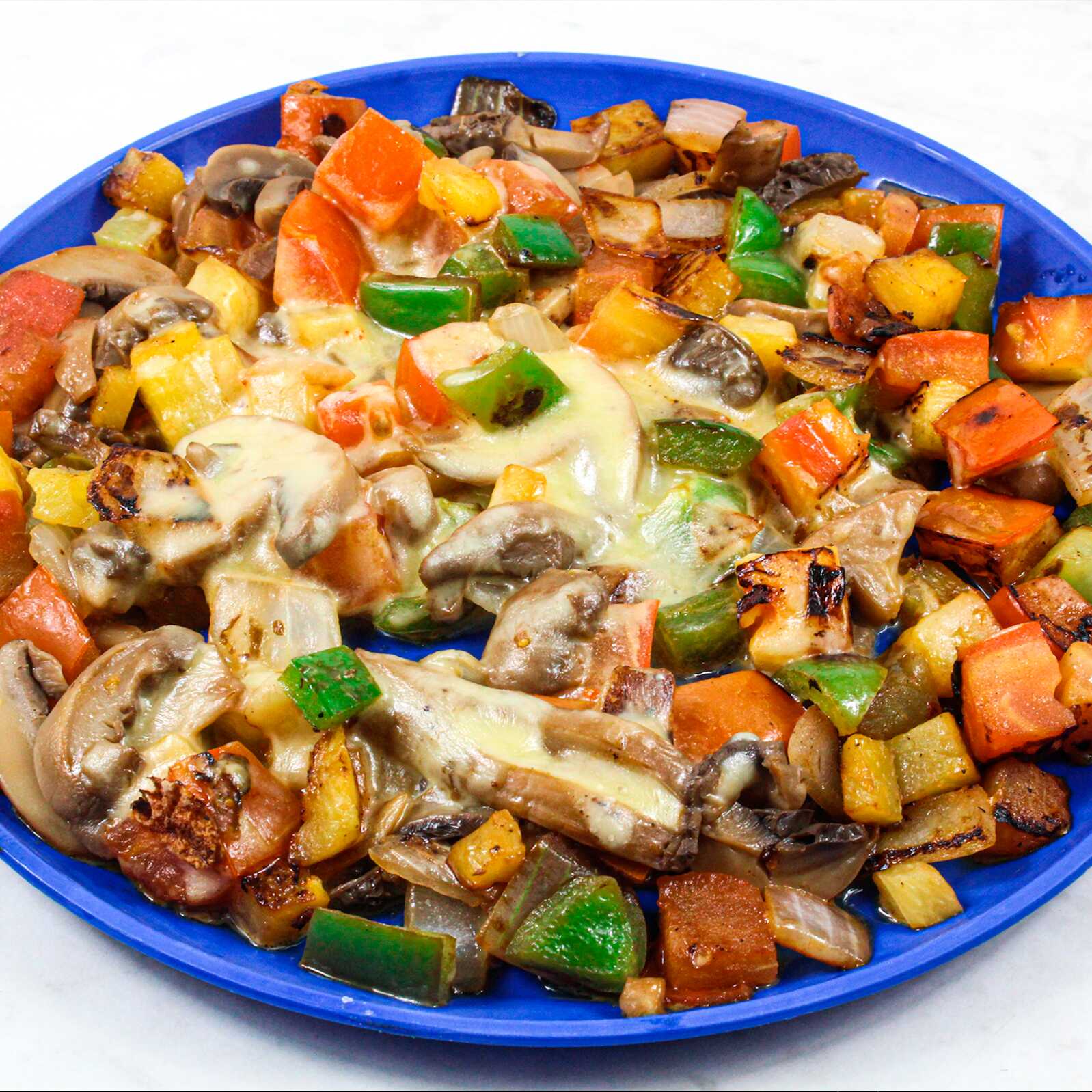 350 gr de alambre hecho con cebolla, champiñones, chile morrón, tomate, piña y queso. Se acompaña con tortillas.