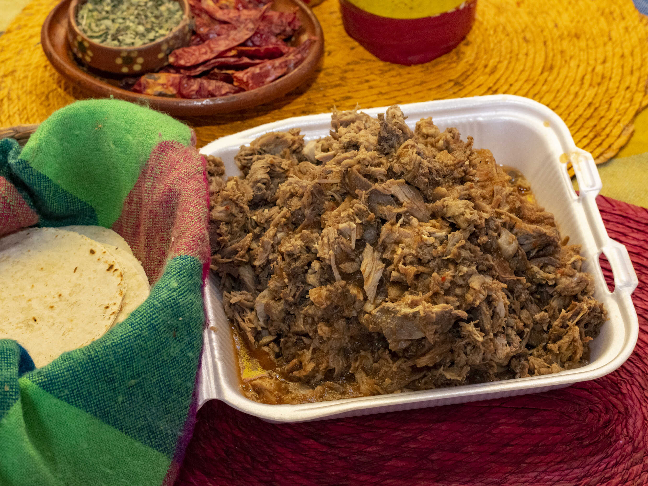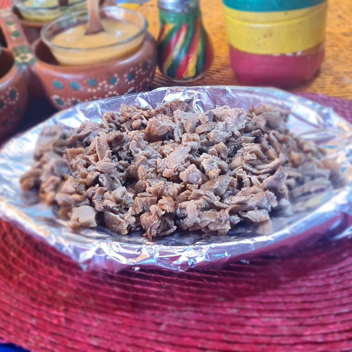 1 kilo de barbacoa de borrego 100% incluye medio litro de consome, verdura y salsas