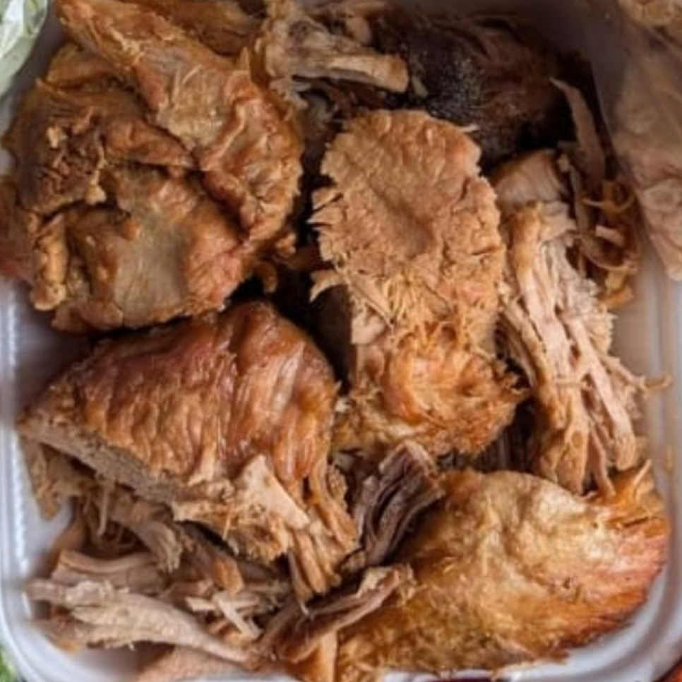 Mezcla de Carnitas, cueritos y buche, acompañado de salsa