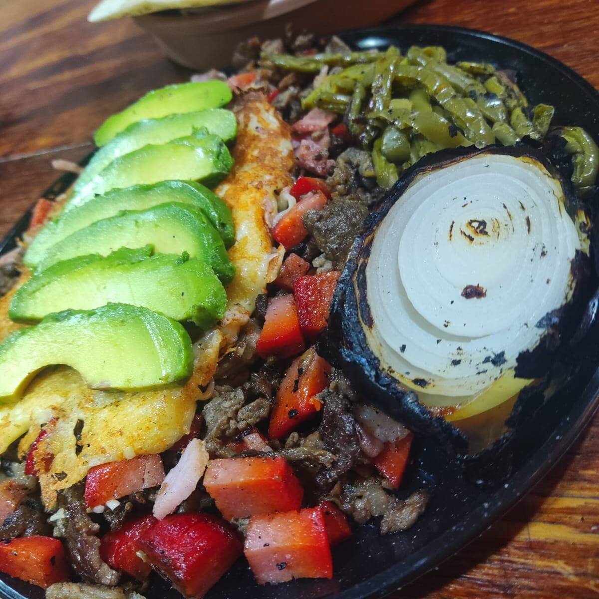 Orden de carne asada (para 6 personas). Incluye salchicha, nopal y cebolla asada, pico de gallo, tortillas y salsas.