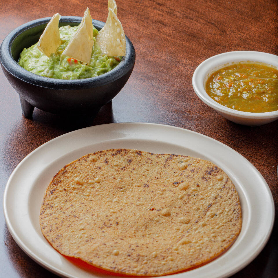 Taco gigante de 18 a 20 cm aprox. con guacamole crema y pechuga de pollo.