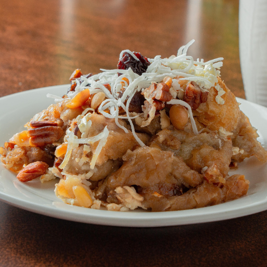 Suave pechuga desmenuzada, bañada en nuestra salsa.