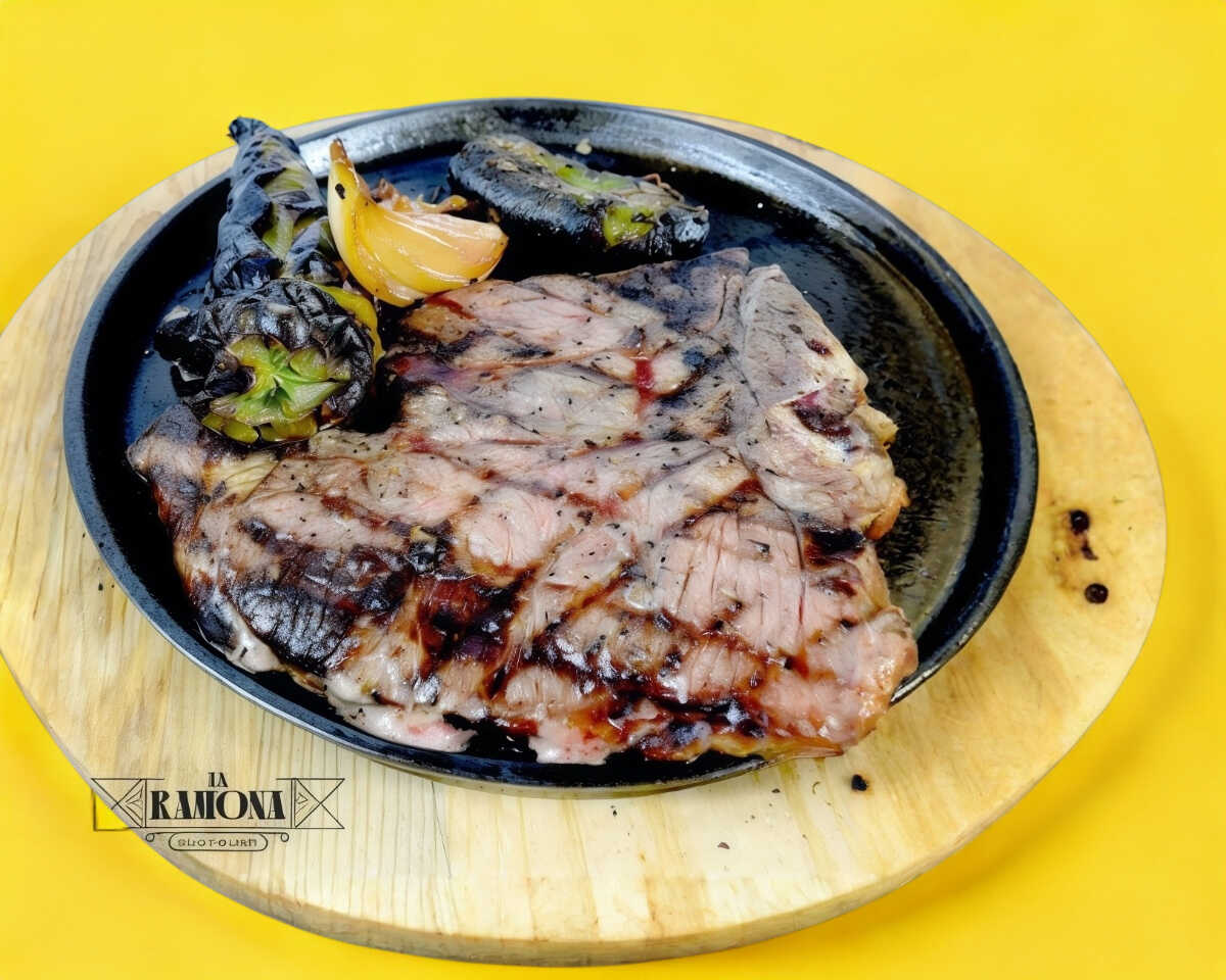 Sirloin, queso y chilaca.