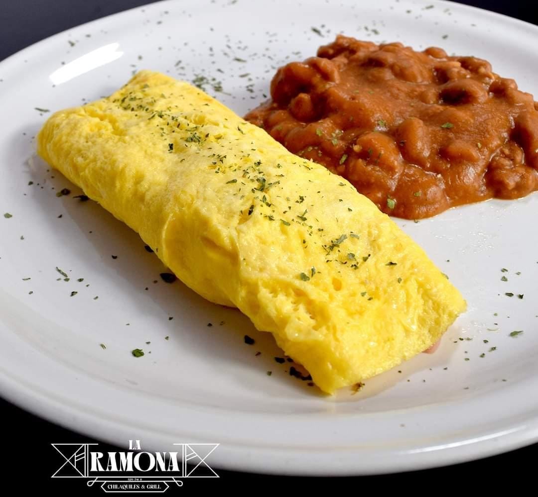 OMELETT CON CHORIZO A COMPAÑADO DE FRIJOLES