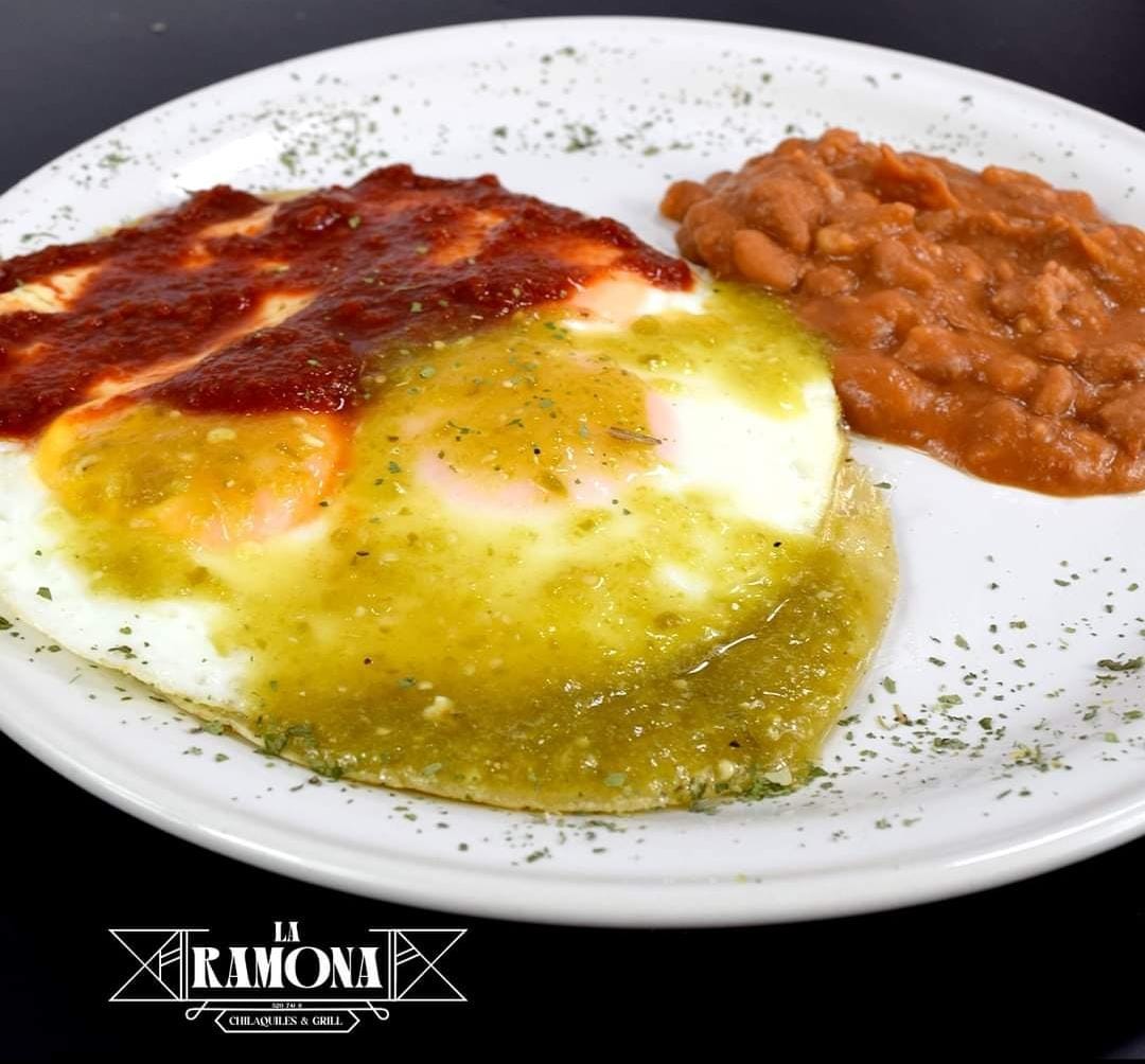 Chilaquiles a tu elección acompañados de frijoles refritos y queso crema salsa a elegir (porción personal)