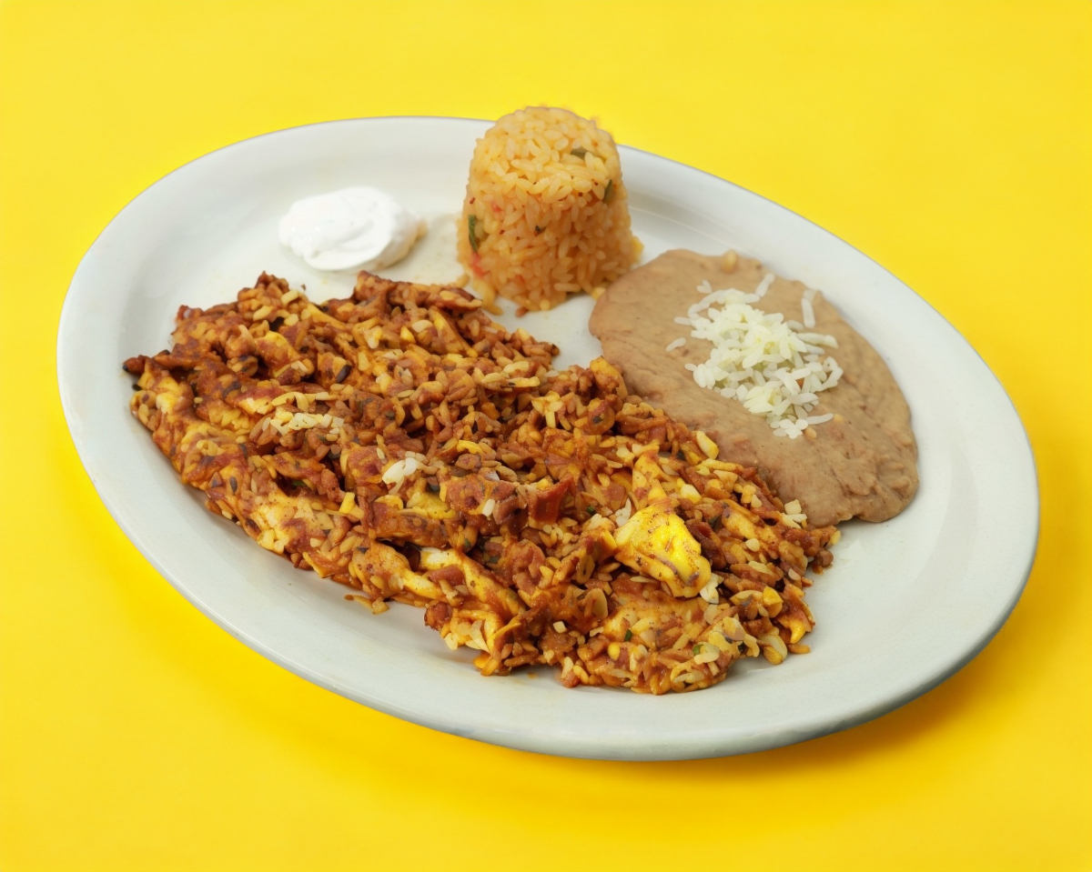 Acompañado de frijoles y arroz.