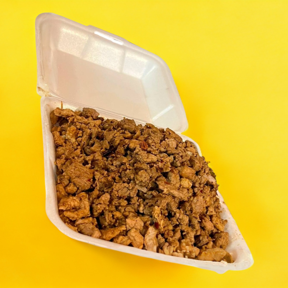 Alambre especial con carne de res, puerco al pastor, bistec de res, queso manchego, chile morrón, cebolla y trozos de piña, 250 gr.