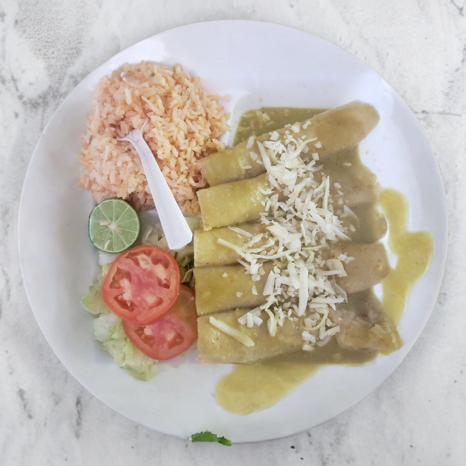 5 Enchiladas, Incluye sopa y verdura