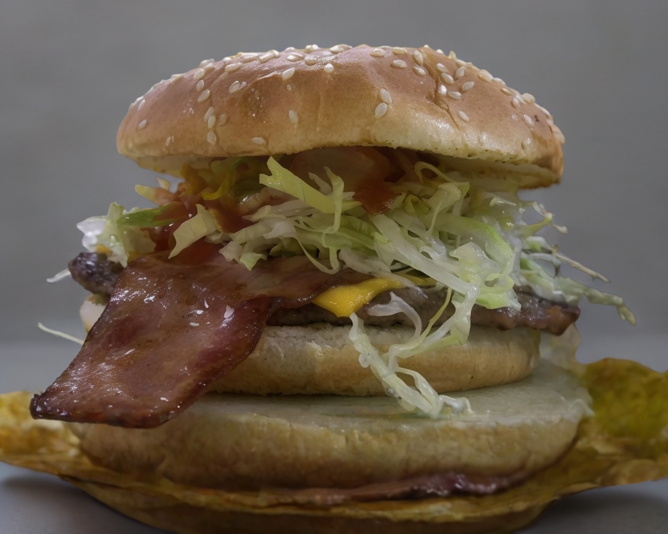 Hamburguesa con queso y tocino.