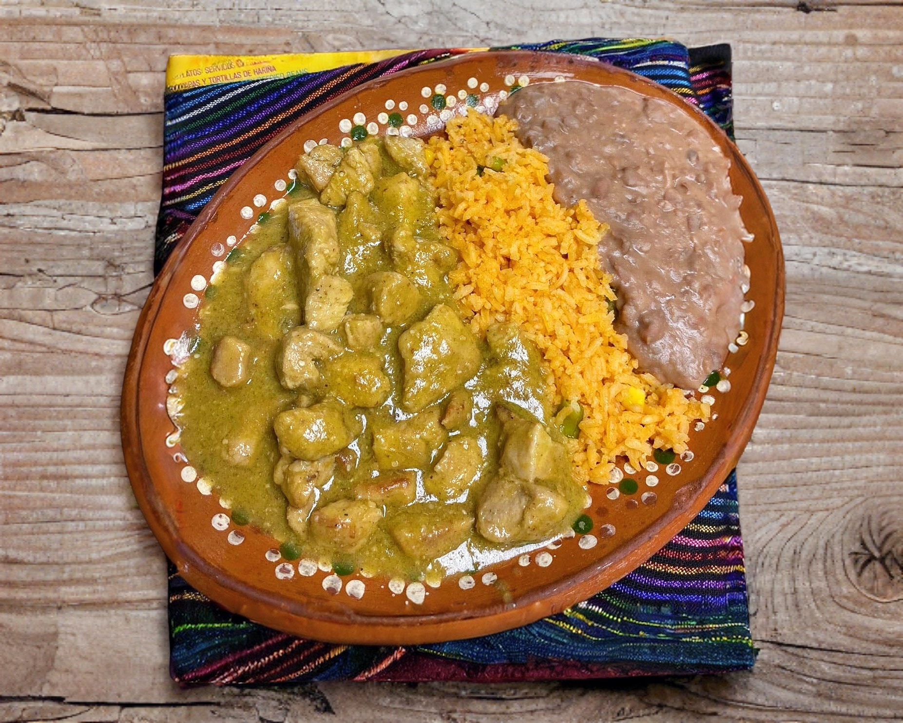 Chilaquiles verdes, frijoles, Guisado (Especificar agregar nota)