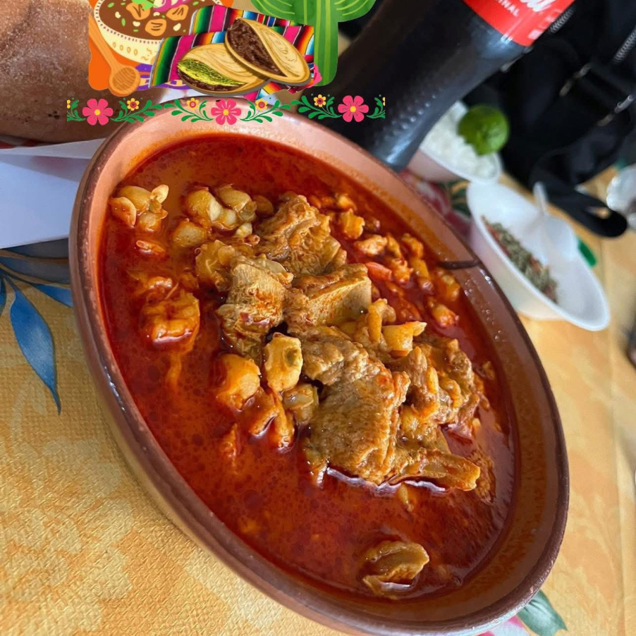 Litro de menudo, pan frances, cebolla, limon, oregano,