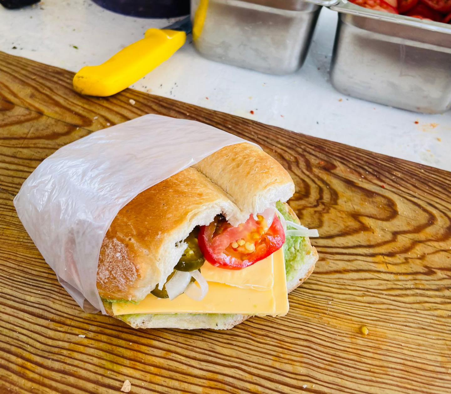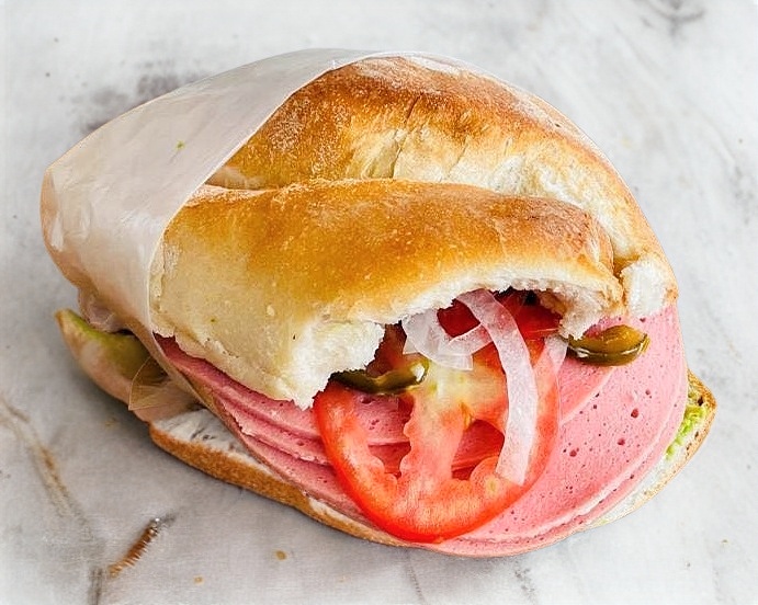Lonche de aguacate, Adobada, jamón y queso.