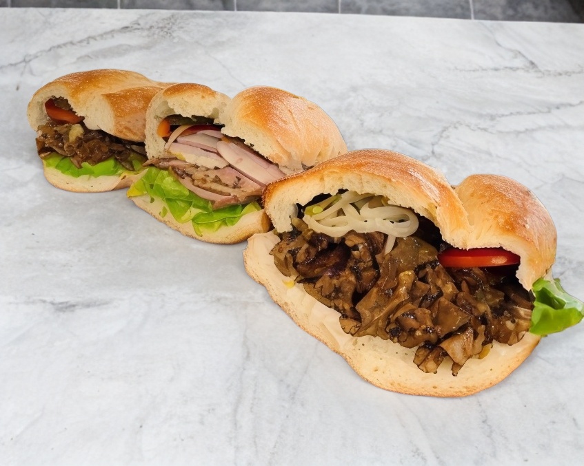 Lonche de aguacate, Bistec, jamón y queso.