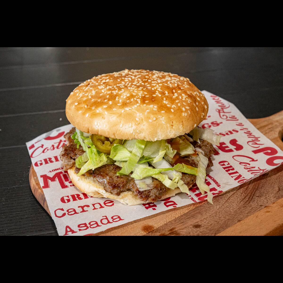 Lonche de bistec preparado a la plancha, acompañado de repollo, rebanadas de tomate, chile jalapeño fresco, cebolla y un toque de mostaza. Pídelo a tu gusto con ingredientes extras.