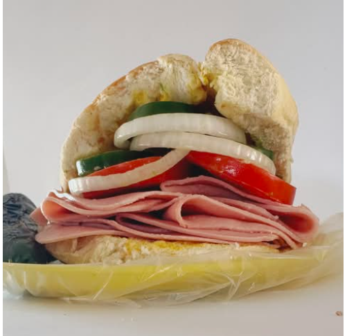 Delicioso pan francés lagunero, con jamón, aguacate y verdura (cebolla, tomate y chiles curtidos).