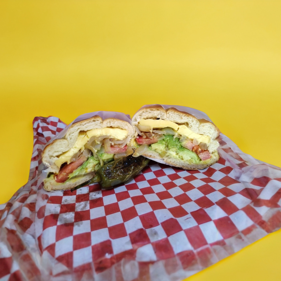 Doble aguacate, queso Chihuahua gratinado (120 g), cebolla asada, tomate, chile curtido, chile toreado y aderezos (picante).