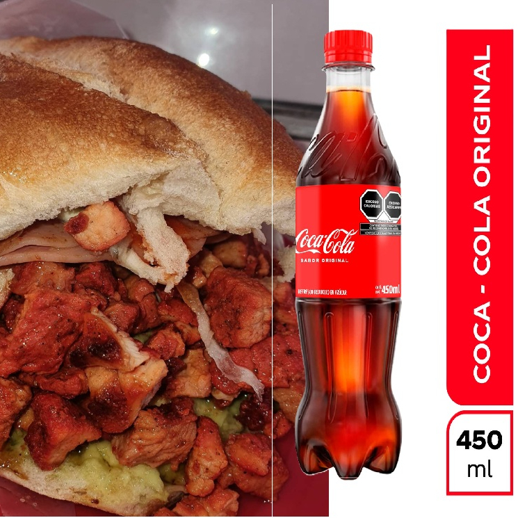 Coca Cola Original 450 ml*1 + Lonche de Carnitas*2