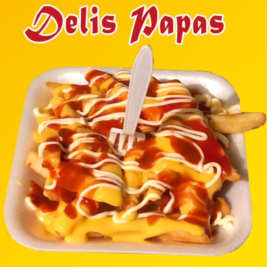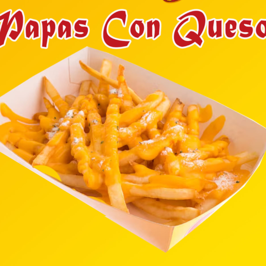 150gr de papas+70 gr de salchicha de pavo bañadas en queso cheze whize