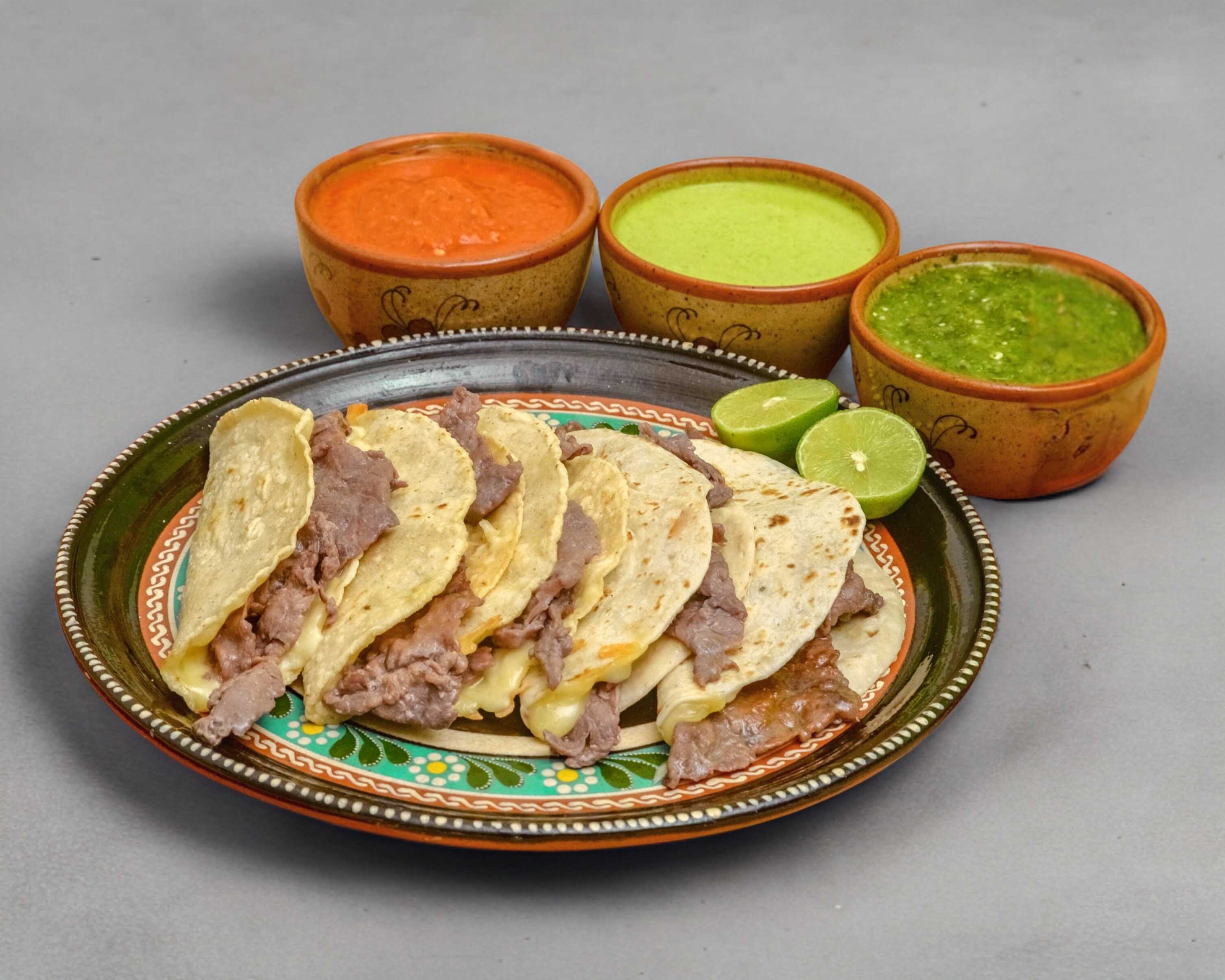 Quesadillas (1) de harina o maíz, con tu guiso favorito.