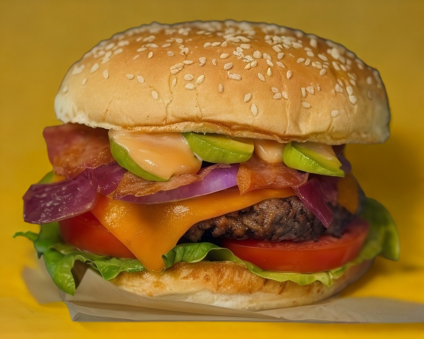 Carne, tocino, aguacate, queso amarillo, jamon. ACOMPAÑADA CON PAPAS A LA FRANCESA.
