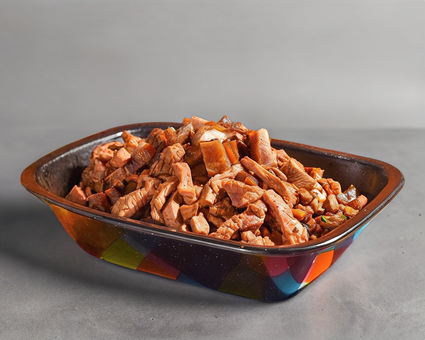 Tradicional carne al pastor con pimiento de colores, cebolla y queso gratinado, incluye tortillas y salsas verde y roja, 300 gr.