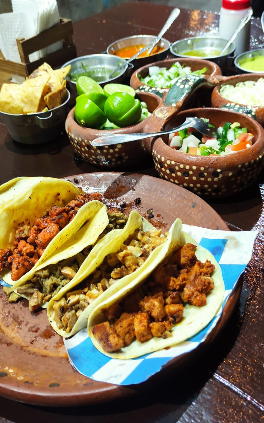 4 tacos de bistec con el marinado de la casa acompañados de papas a la francesa